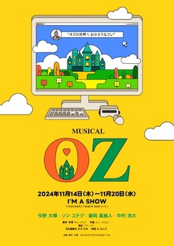 ●11月14日から有楽町のI’M A SHOWで訳詞した韓国ミュージカル『OZ』が上演される。脚本、作詞:キム・ソルジ、作曲:ムン・ソヒョン、演出:パク・ジ、日本語脚本、西垣匤基、出演:今野大樹、ソン・ユテク、藤岡真威人、中村浩大、波多野翔、声の出演:牧野由依。
