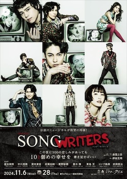 ●11月6日、プロデュースしたミュージカル『SONG WRITERS』が9年ぶり、シアター・クリエで奇跡の再再演を迎える。書き始めた時は、輸入作品ばかりのミュージカル界に風穴をあけようと果敢ない夢を見ていたことが、少しは現実になったのかも知れない。12月に大阪ピロティホール、そして大千穐楽を名古屋の日本特殊陶業ビレッジホールで迎えたのだか、何とそれが記念すべき100公演目。『SONG WRITERS』の旅は続く。